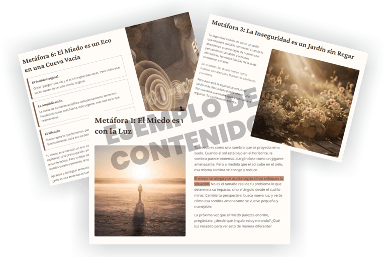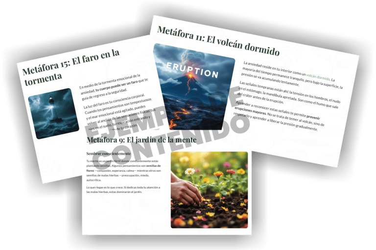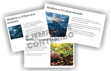 Revoluciona tu enfoque terapéutico con poderosas metáforas que simplifican conceptos complejos y despiertan aprendizajes profundos sobre las emociones. Este material exclusivo será tu herramienta diaria para sesiones más impactantes.